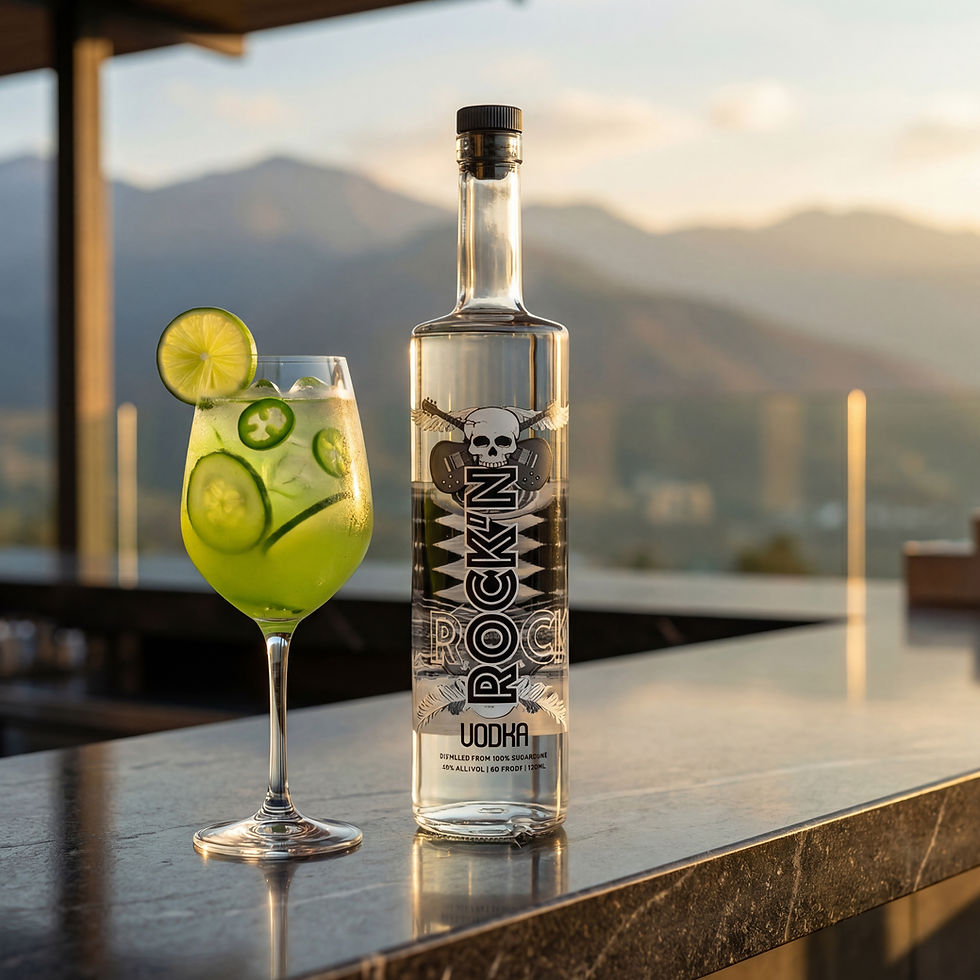 Add 2 oz ROCK’N Vodka, 1 oz lime juice, and 0.75 oz agave syrup.